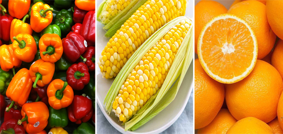 4. الأطعمة الملونة: مثل البرتقال والذرة الحلوة والفلفل تحتوي على زياكسانثين. يجب تناول هذه الأطعمة ضمن النظام الغذائي، لأن جسم الإنسان لا ينتج هذه المواد المضادة للأكسدة بشكل طبيعي، ويجب طهيها بشكل خفيف لأن الإفراط في طهيها قد يؤدي إلى تدمير الأصباغ.