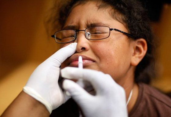 ويتم إعطاء هذا اللقاح عن طريق الأنف على شكل رذاذ للأطفال في المدارس مجاناً ولكبار السن ولكل شخص يرغب في الوقاية من الانفلونزا عن طريق الحقن. لدى تدقيق بعض الأهالي في مكونات هذا اللقاح تبين أنه يحتوي على مادة الجيلاتين المشتقة من الخنزير، مما أثار جدلاً واسعاً بين المسلمين وأوقف بعضهم تلقيح أطفالهم لهذا السبب.
