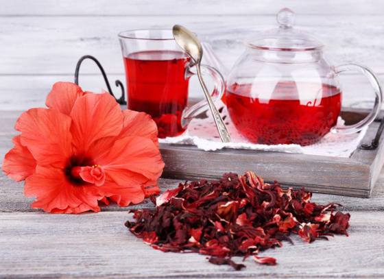 5. شاي الكركديه: له تأثير كبير في علاج ارتفاع ضغط الدم.