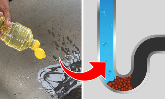 1. الزيوت: يعد التخلص من الزيوت في حوض المطبخ من أبرز أسباب انسداد أنابيب الصرف، نظرا لأنها تتحد مع البقايا الأخرى لتعمل على سد المصارف، بل وكذلك تؤدي لتلوث البيئة بدرجات لا يستهان بها، وتتطلب إذن ترك بقايا الزيوت بداخل وعاء، ووضعه في سلة القمامة بدلا من إلقائه بنفسك في البالوعة أو حوض المطبخ.
