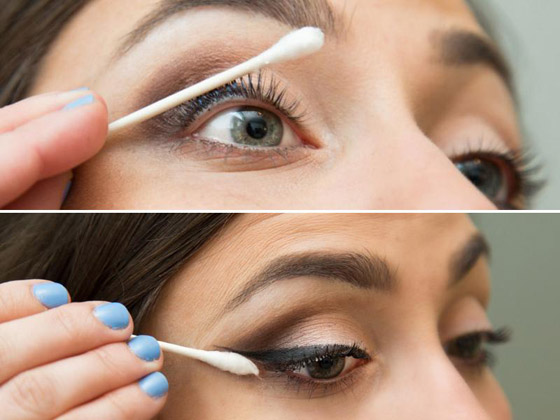 إخفاء العلامات السوداء: تساعد الأعواد القطنية في إخفاء العلامات السوداء في الوجه، لا سيما حول العينين، وذلك بعد غمرها بمسحوق أو مرهم مبيض، وهذا يجعل عملية الإخفاء دقيقة.