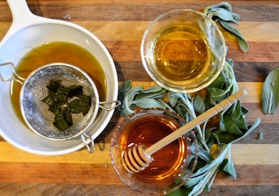 2. الميرمية، والخل، والعسل: يتكون هذا المزيج المناسب للغرغرة من منقوع عشبة الميرمية (المنقوعة في الماء الساخن لعشر دقائق، والمصفاة)، وملعقة صغيرة من خل التفاح، والقليل من العسل. اتبع نفس الخطوات السابقة، وتغرغر بهذا المزيج بضع مرات في اليوم.