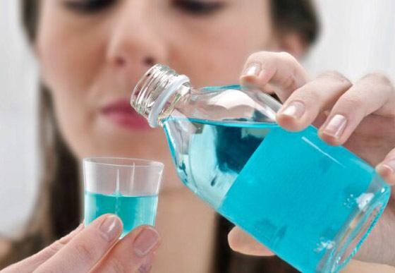3. غسول الفم: إذا نفدت لديك الأعشاب وأوراق الشاي، فاتجه إلى مرحاضك وأحضر زجاجة غسول الفم. لا يقضي غسول الفم التجاري على رائحة الفم الكريهة فحسب؛ ولكن يساعد أيضاً في تهدئة التهاب الحلق.