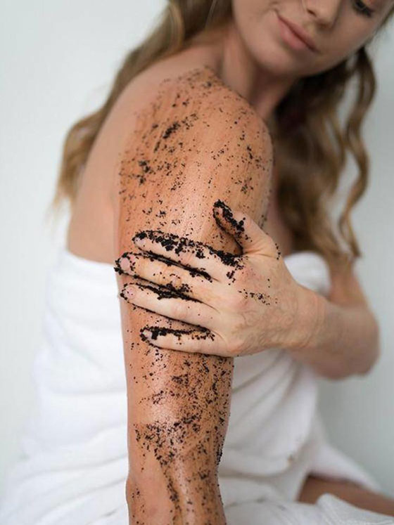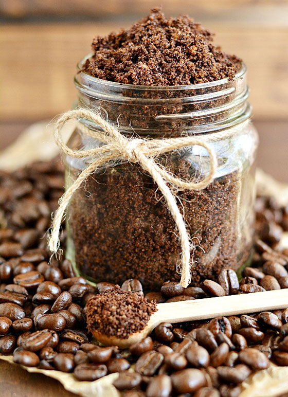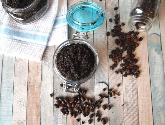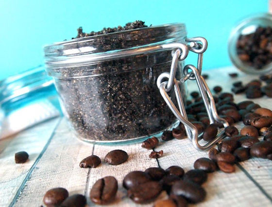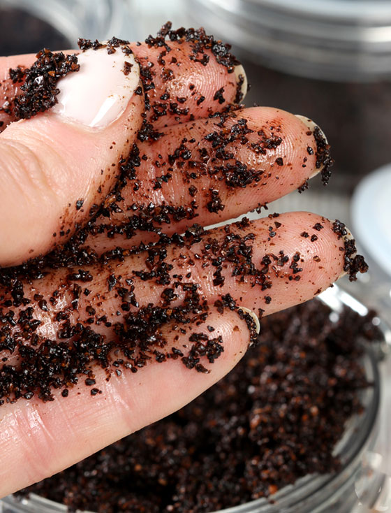 2- مقشر للجسم بالقهوة والزيوت المتنوعة: عندما تجتمع حبيبات القهوة الجاهزة مع الزيوت المتنوعة نحصل على مفعول مجدد للبشرة ومحارب للسلولايت. لتحضير هذا المقشر يكفي خلط نصف كوب من حبيبات القهوة الجاهزة، نصف كوب من السكر، ملعقتين كبيرتين من زيت بذور العنب، ملعقة كبيرة من زيت اللوز، نصف ملعقة كبيرة من زيت الجوجوبا، 5 قطرات من الفيتامين E، و14 قطرة من زيت الفانيلا الأساسي. قد تبدو هذه الخلطة جافة بعض الشيء لكن مفعولها المرطب كبير جداً، وهي مفيدة لتقشير كامل الجسم خاصة القدمين. يمكن الاحتفاظ بهذه الخلطة في وعاء زجاجي مقفل لفترة طويلة، على أن يتم استعمالها مرة أسبوعياً للحفاظ على بشرة ناعمة على الدوام.
