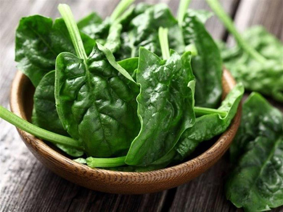 8- السبانخ: وجبة منخفضة السعرارات الحرارية ومصدر جيد لفيتامين "أ"، الذي يعزز صحة الشعر والجلد.
