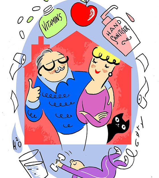 نظام غذائي صحي: أهمية اتباع نظام غذائي جيد أمر حيوي للصحة، وخاصة بالنسبة لكبار السن، الذين نادرا ما يخرجون الى الهواء الطلق ويمكن أن يجدوا أنفسهم بسهولة يفقدون اهتمامهم بالطعام. وتوضح أليسون سميث ، أخصائية تغذية ورئيسة المجموعة المتخصصة لكبار السن في الجمعية البريطانية للتغذية."فترة العزلة الذاتية ستعني أن كبار السن بحاجة إلى إيلاء اهتمام إضافي لاحتياجاتهم الغذائية ، وضمان الحصول على جميع المعادن والفيتامينات التي يحتاجونها". فكلما تقدمنا في السن، نفقد كتلة العضلات ونكسب كتلة الدهون. ولكن الدراسات تظهر أن الضرر يمكن ان يكون أسرع إذا بقينا غير نشطين. التفكير في إدراج البروتين بناء العضلات في وجبة الإفطار والوجبات القائمة على البروتين في الغداء والعشاء. أيضا، يمكنك إضافة وجبات خفيفة مثل البيض،" تقول أليسون سميث. وتضيف أن الجسم يتطلب نشاطًا لتحفيز تحويل البروتين إلى العضلات.