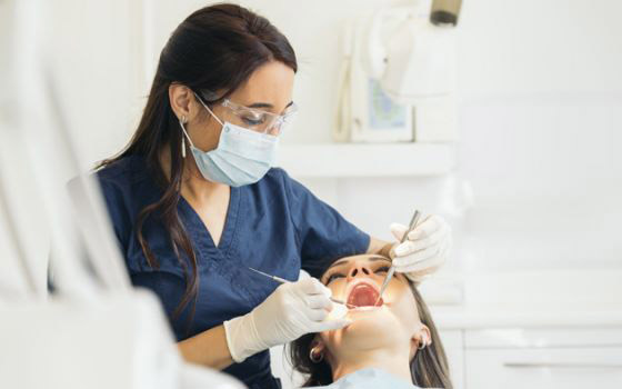 ويوصي العديد من أطباء الأسنان بتأجيل الزيارات من أجل العناية الروتينية، مثل الفحوصات والتنظيف والحشو (خاصة وأن انتقال الفيروس عبارة عن عدوى تنفسية). وينصح الخبراء بقصر الكشوفات على الحالات الطارئة فقط مثل ألم شديد لا يحتمل في الأسنان أو كسر الأسنان نتيجة للسقوط أو حادث، أو الالتهابات الشديدة وتورم اللثة، حفاظا على سلامة كل من المريض والطبيب في نفس الوقت.