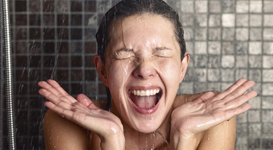 عند العودة من العمل أو حتى في الصباح وخاصة لمن يعيشون في مناطق شديدة الحرارة يمكنهم الاستعانة بالماء البارد للاستحمام لترطيب الجسم وتخفيف درجة حرارته من خلال وضع الرأس تحت الماء البارد أو منخفض الحرارة لمدة 10 دقائق حتى تنخفض درجة حرارة الجسم أما إن كنت خارج المنزل فينصح بالاستعانة بمياه الزجاجات التي تكون باردة جداً مع سكب القليل منها على منشفة ومن ثم مسح الوجه والرقبة والجبين بها كل 15 دقيقة.