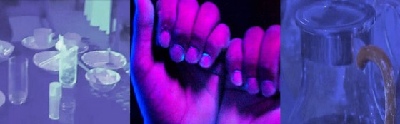 كان "ملقط" المأكولات من البوفيه، بداية الإصابات الجماعية، لأن كل من أمسك به من التسعة وغيرهم، مضى بعدها إلى الطاولة بيد ملطخة بالجرثومة، أو المستجد، وعلموا ذلك حين سلطوا من مصباح فوق بنفسجي، ما يسمونه Black Light أو "الضوء الأسود" الشبيه بأشعة "فلوريسّنت" طيفية، هي من بخار الزئبق العاكس لما ليس من لون المكان المتواجد فيه الفيروس أو الميكروب، لذلك فحين مر الضوء ماسحاً الموجود فوق الطاولة أو بجوارها، كما على الأيادي والوجوه، انعكست الإصابات، سواء "كورونية" أو جرثومية، وظهر حجم التفشي والانتشار الخطير.