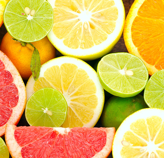 4. الحمضيات: تشير جميع الدراسات إلى احتواء الحمضيات على نسبة عالية من فيتامين "سي"، والذي يعتبر مضاضا قويا جدا للأكسدة، تمامًا مثل فيتامين "ج" وفيتامين "هاء" وتنصح منظمة البصريات الأمريكية بهذه الفيتامينات لمحاربة تلف العين المرتبط بالعمر، تشمل الحمضيات الغنية بفيتامين "سي" الليمون والبرتقال.