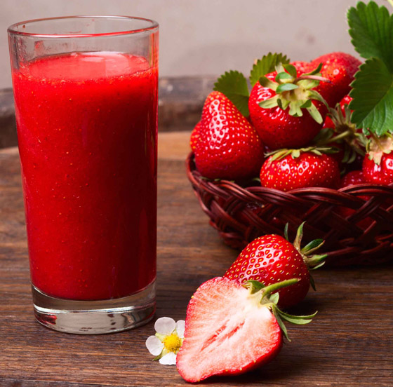 2. عصير الفراولة: أكدت الدراسات والأبحاث المنشورة في مجلة الكيمياء الزراعية والغذائية أن الفراولة من المصادر الجيدة للمجموعة كبيرة من المغذيات والفيتامينات. ويحتوي عصير الفراولة على المعادن وفيتامين "ج" والفولات والفينولات، وهي من أفضل مضادات الأكسدة التي تمنح الجسم الحيوية وتساعده على توليد الطاقة. ويمد عصير الفراولة الجسم بالطاقة اللازمة له، لكن دون إضافة السكر لتجنب أضراره الجانبية التي يمكن أن يسببها السكر العادي.