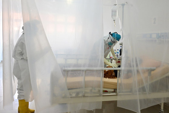 علاج مصاب بكورونا في مستشفى باندونيسيا