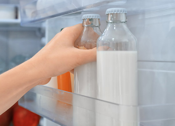 هل أنت ممن يضعون عبوة الحليب في باب الثلاجة؟ إذا كنت كذلك فمن فضلك قم بوضعها في المرة القادمة في الجزء الخلفي، وتخلّص من العبوة الحالية. نعلم تماماً أنّ شكل باب الثلاجة مناسب جداً لوضع عبوات الحليب، ولكن في الحقيقة يتسبب فتح الباب المتكرر تقلبات كبيرة في درجات الحرارة في تلك المنطقة؛ ما يُسبب بالتالي تلفاً أسرع.