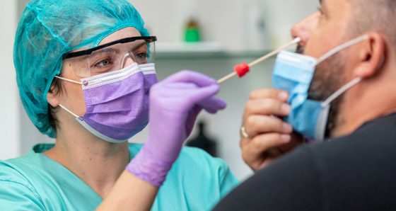 تعتبر هذه الاختبارات التشخيصية الأكثر حساسية للكشف عن العدوى النشطة، والنتائج دقيقة للغاية. قد يطلبها الطبيب عند وجود شك في الإصابة، أو ما إذا كنت بحاجة إلى أن تثبت لصاحب العمل أنك لست مصاباً قبل العودة إلى العمل أو الحرم الجامعي. في معظم الحالات، يقوم مقدم الرعاية الصحية بجمع المخاط من الأنف أو الحلق باستخدام مسحة متخصصة. (تستخدم بعض الاختبارات الجزيئية الآن اللعاب، والذي قد يجده الناس أكثر راحة).