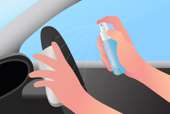 في حال امتلاكك سيارة، من الضروري ألا تنساها من عمليات التعقيم أيضاً. تخلص أولاً من جميع النفايات داخل السيارة. يفضل وضعا في كيسٍ بلاستيكي، وإحكام إغلاقه ثم رميه في المكان المخصص لذلك. بعد ذلك، يجب تعقيم أسطح السيارة من الداخل جيداً، عن طريق رشها بمواد التعقيم المخصصة لذلك، وفتح زجاج السيارة أطول فترة، لضمان حصولها على تهوية جيدة.