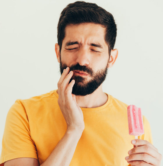 3. الأسنان الحساسة: في بعض الأحيان قد تشعر بعدم الراحة عندما تتعرض أسنانك أو سن معين للهواء البارد والسوائل وبعض الأطعمة. هذا يعني أن أسنانك قد تكون قد طورت حساسية مرتبطة بمحفز واحد أو أكثر، مثل درجات الحرارة الباردة. تتطور حساسية الأسنان من العاج المكشوف وهو النسيج الذي يقع تحت المينا (الطبقة الخارجية الصلبة للسن) والملاط (النسيج الذي يغطي جذر السن). قد ينكشف العاج نتيجة التجاويف أو الحشوات البالية أو الأسنان المتشققة. يمكن أن يؤدي انحسار اللثة في أمراض اللثة أيضاً إلى حساسية الأسنان.