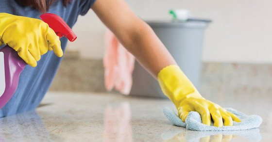 يوصي مركز السيطرة على الأمراض بتنظيف وتعقيم الأسطح التي يتم لمسها بشكل متكرر يوميًا، ويوضح: "يشمل هذا الطاولات ومقابض الأبواب ومفاتيح الإضاءة وأسطح العمل والمقابض والمكاتب والهواتف ولوحات المفاتيح والمراحيض والحنفيات والمغاسل".