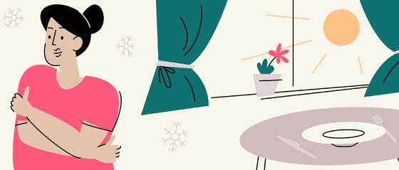 الغدة الدرقية هي غدة على شكل فراشة بالعنق تساعد في تنظيم عملية التمثيل الغذائي. وحين لا تفرز الغدة الدرقية ما يكفي من الهرمونات، فقد يكون ذلك علامة على قصور الغدة الدرقية. وهذه الحالة قد تجعلك أكثر حساسية لتغيرات درجة الحرارة (خاصةً البرد). وفضلاً عن الشعور بالبرودة، من بين الأعراض الأخرى لهذه الحالة: