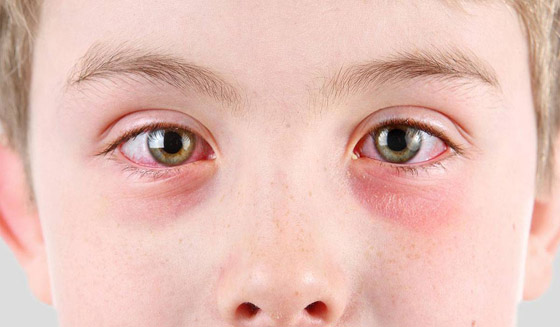- العيون: تظهر أعراض الحساسية في العيون على شكل احمرار وتدمع وحرقة.
