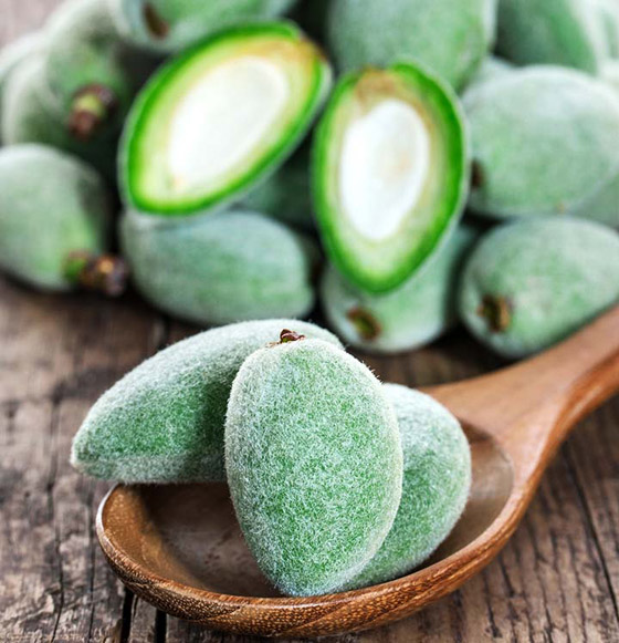 للوز الأخضر نكهة معقدة وخفيفة تشبه الأزهار والعشب، ونكهة حلوة وحامضة بعض الشيء، ويشتهر بأكله مع الملح خاصة. لكن هذه الفاكهة اللذيذة لها فوائد كثيرة، فهي ليست غنية بمضادات الأكسدة فحسب، بل ثبت أيضاً أن اللوز الأخضر يمنع تساقط الشعر، ويُعزز نمو شعر جديد، وله فوائد كثيرة للجسم والقلب.