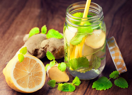 6- عصير الليمون والزنجبيل الأخضر: يمكن أن يكون عصير الليمون والزنجبيل الأخضر إضافة حيوية ولذيذة لنظام غذائي صحي يساعد على فقدان الوزن الزائد في نفس الوقت. ويمكن أن يساعد الليمون في إضافة نكهة إلى المشروب فضلا عن منح بعض مضادات الأكسدة الإضافية. وتظهر بعض الدراسات التي أجريت على البشر والحيوانات أيضًا أن الزنجبيل يمكن أن يساعد في زيادة التمثيل الغذائي وتقليل الشهية وتعزيز فقدان الوزن. ويمكن تحضير العصير من خلال إضافة قطعة صغيرة من الزنجبيل المقشر وبعض عصير الليمون الطازج وكوب واحد (30 غراما) مع قليل من السبانخ النيئة.
