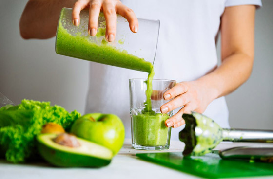 4- عصير الخضراوات: وعلى الرغم من أن المكونات الدقيقة للعصائر الخضراء يمكن أن تختلف، إلا أن معظمها يتميز بالخضراوات الورقية مثل الكرنب أو السبانخ أو الملفوف. إن هذه المكونات غنية بالألياف وقليلة السكر ومليئة بمضادات الأكسدة المضادة للالتهابات. ومن المثير للاهتمام أن الدراسات تشير إلى أن زيادة تناول للفواكه والخضراوات ربما يكون مرتبطًا بانخفاض وزن الجسم أو تقليل خطر زيادة الوزن بمرور الوقت. ومن السهل تحضير العصائر الخضراء بما يناسب مختلف الأذواق من خلال تبديل المكونات، حسب ما يفضله كل شخص، فعلى سبيل المثالي يمكن صنع عصير أخضر في المنزل بمكونات بسيطة من خلال مزج السبانخ والخيار والتفاح الأخضر والكرفس. وينصح الخبراء باستخدام الخلاط بدلاً من العصارة، من أجل الحصول على فائدة إضافية تتمثل في جميع العناصر الغذائية والألياف من الخضراوات الورقية، بما يجعلها أكثر إشباعًا وخسارة للوزن الزائد.