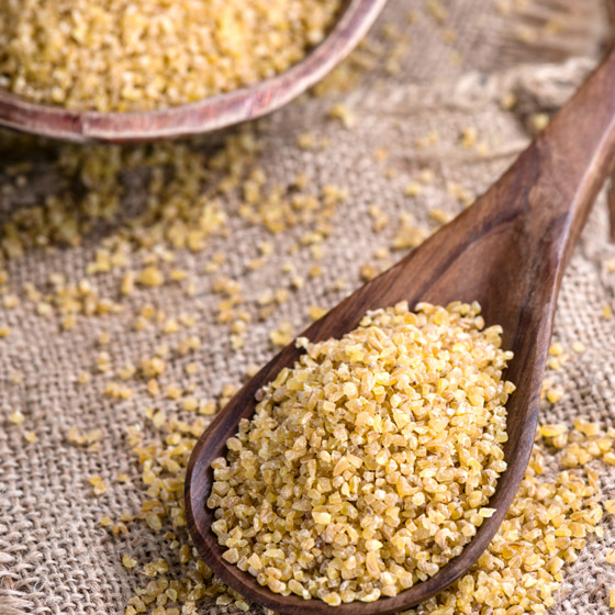 4) البرغل: يعد البرغل غنيا بالبروتينات، حيث تحتوي على 100 غرام منه على 12 غراما من البروتينات. كما يحتوي على فيتامين К ومجموعة فيتامينات В وفيتامين Е وبيتا كاروتين والمغنيسيوم والكالسيوم والحديد. وكبقية الحبوب يؤثر إيجابيا في عمل الجهاز الهضمي. كما أنه يحفز تدفق الصفراء ما يمنع نشوء الحصى وتسمم الكبد.