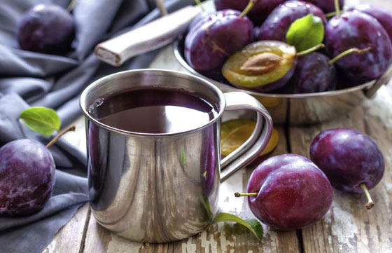 1- عصير البرقوق (الخوخ): غني بالألياف الغذائية والسوربيتول، مما يجعله علاجاً مثالياً للتخلص من الإمساك.