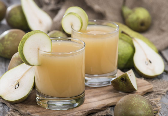5- عصير الكمثرى: يعتبر عصير الكمثرى خياراً رائعاً للتخلص من الإمساك. هذه الفاكهة غنية بالفيتامينات، وتحتوي على ألياف وكمية كبيرة من السوربيتول.