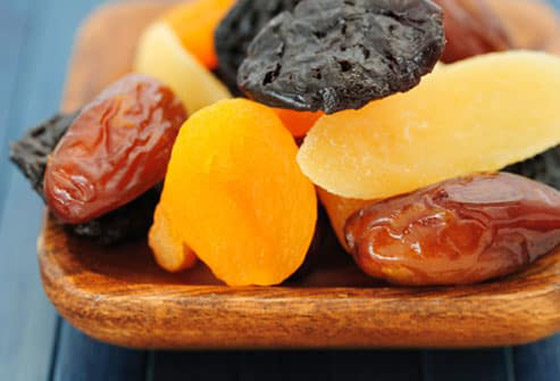 الفاكهة المجففة: الخوخ مشهور بقدرته على المساعدة في الهضم، وذلك بسبب احتوائه على نسبة عالية من الألياف، كما يمكن أن يساعد في تنظيم حركات الأمعاء وتخفيف الإمساك، إذ يتم تحميل معظم الفواكه المجففة مع الألياف، لذلك حاول تناول عدد قليل من التين المجفف أو التمور أو الزبيب أو المشمش المجفف كوجبة خفيفة.