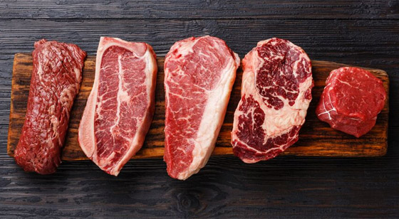 في العديد من الدراسات العلمية ثبت أن "أهم ارتباط غذائي مع مرض الزهايمر هو استهلاك اللحوم الحمراء بإفراط، إضافة إلى تناول البيض ومنتجات الألبان عالية الدسم أيضاً". وتؤثر اللحوم الحمراء على الجسم مثل تأثير الدهون المشبعة تماماً، حيث تسد نظام القلب والأوعية الدموية، وبالتالي تنسد الأوعية الدموية في دماغنا أيضاً. تم العثور على نتائج مماثلة في دراسة واسعة النطاق تم إجراؤها على 5038 شخصاً عام 2017؛ ارتبط اتباع نظام غذائي غني باللحوم الحمراء واللحوم المصنعة والأطعمة المقلية بالالتهابات وانخفاض أسرع في التفكير والقدرات العقلية على مدى 10 سنوات.