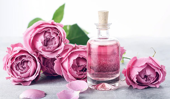 2. ماء الورد للشعر: يغذي فروة الرأس وينشطها، ويعزز نمو الشعر بكثافة، ويقوي بصيلات وجذور الشعر، ويحمي الشعر من التقصف.