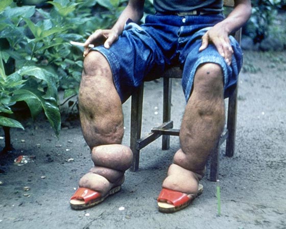 5. وهو مرض يؤدي إلى ورم العصب الليفي، مما يسبب بتضخم الجلد والوجه والأنف ويؤدي إلى انسداله ليشبه خرطوم الفيل. وفي حالات عديدة ينتشر الورم في عامة الجسم ليصيب الساقين واليدين مسببا انتفاخات تشبه إلى حد كبير فقاعات الصابون. ويتطلب العلاج عمل جراحي، حيث لقي 70% من الأشخاص الذين لم يقوموا بعمل جراحي.