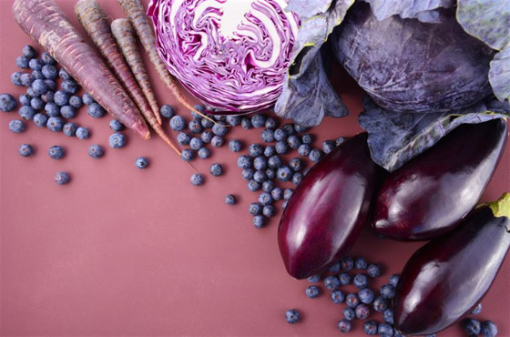 تتمتع مادة "الأنثوسيانين" (Anthocyanin) بفوائد صحية جمّة، وتتمثل المصادر الغذائية الغنية بهذه المادة في الخضروات والفواكه ذات اللون الأحمر والبنفسجي والأزرق مثل التوت والعنب الأحمر والكرز والباذنجان والبرتقال الأحمر والكرنب الأحمر.