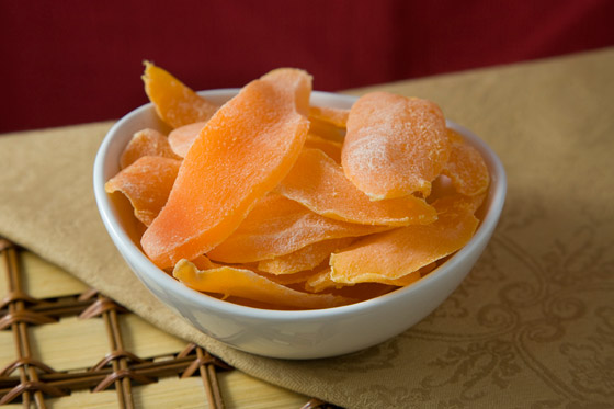 تحتوي 4 شرائح من المانغو المجفف على 130 سعرة حرارية، و29 غراما من الكربوهيدرات، وغرامي ألياف، و21 غراما من السكر. وهذه الشرائح الرقيقة من المانغو المجفف تزود الجسم بالفيتامين بكمية هامة من البوتاسيوم. وأظهرت إحدى الدراسات أن تناول المانغو يساعد في خفض ضغط الدم وتحسين صحة القلب لدى المسنات. وتنصح الكاتبة عند شراء المانغو بالتأكد من أنه مجفف بشكل طبيعي، ولا يحتوي على السكر المضاف والكبريتيت.
