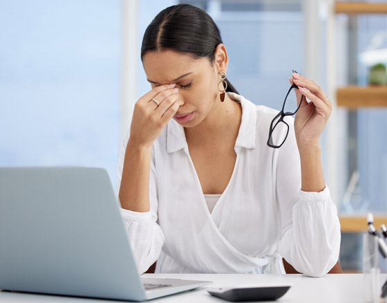 - إجهاد العين والشعور بالحرقة والإرهاق الدائم في العين.