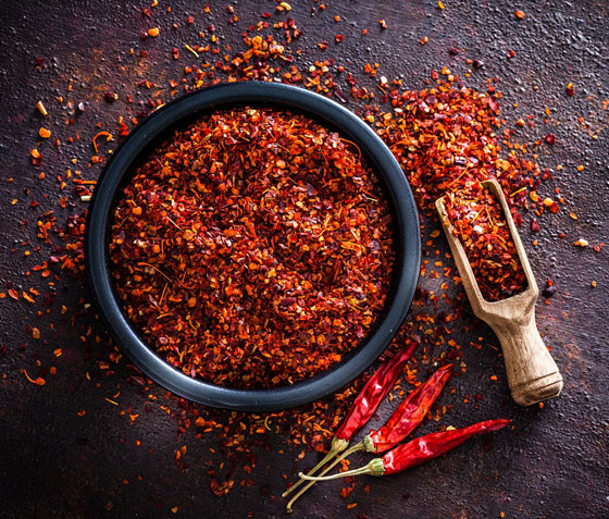 6) الفلفل الأحمر "الشطة": مسكن قوي لآلام العضلات والعظام، فهو يعطي إحساساً بحرقة موضعية مما ينتج عنه تخدير لبعض الوقت بمنطقة الألم.