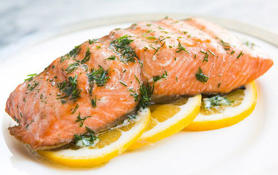 تعتبر أحماض أوميغا 3 الدهنية ضرورية لنمو دماغ طفلك كما أنها قد تحسن مزاجك أثناء فترة الحمل. يوفر السلمون أيضاً البروتين وفيتامين د، اللذين يحتاجهما طفلك لعظام وأسنان صحية. كما أن سمك السلمون يعتبر خياراً منخفض الزئبق بالنسبة للنساء الحوامل من المأكولات البحرية، ويمكن تناوله كل أسبوع. لكن تجنبي أنواع الأسماك التي تحتوي على نسب عالية من الزئبق مثل سمك أبو سيف وسمك القرش والماكريل والتونة.