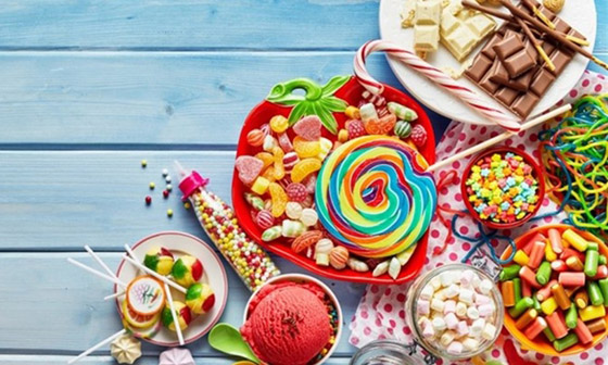 - السكاكر والمعجنات: السكر والحلوى والمشروبات المحلاة والمعكرونة والخبز الأبيض، تساهم في رفع تركيز سكر الدم (غلوكوز) بسرعة، ثم تخفضه بسرعة، وهذا التقلب السريع في سكر الدم (الذي يتبعه تقلب في إفراز هرمون الأنسولين، وهرموني الشدة كورتيزول وأدرينالين)، يعكر المزاج ويجعلك متوتر الأعصاب، وقد يساهم في الإصابة بالكآبة.