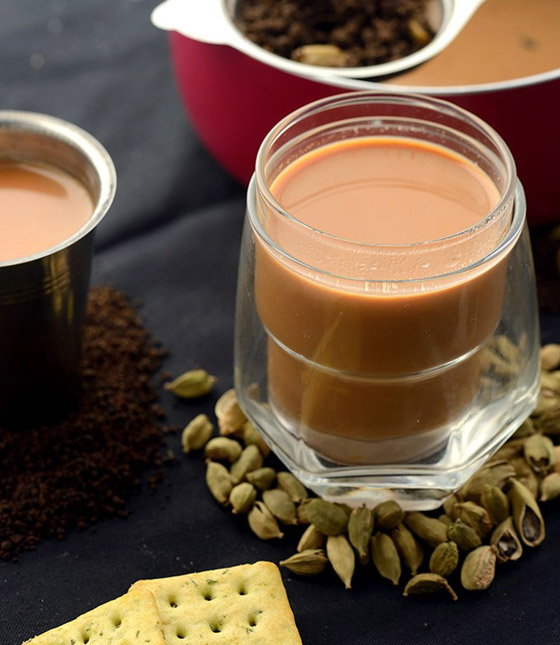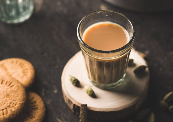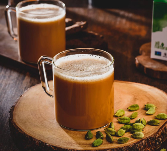 3- ولتحضير الشاي بالحبهان، يُغلى الحليب مع ملعقة صغيرة من الشاي الأسود المُضاف له مسحوق الحبهان المطحون والسكر حسب الرغبة، ويُقدم بعد إضافة شعرة من الزعفران الطبيعي لمزيد من المذاق الغني.