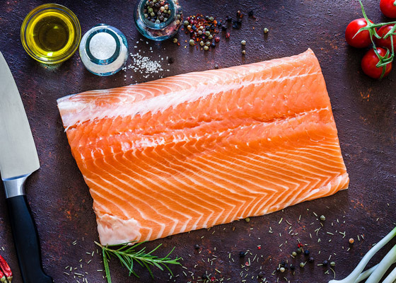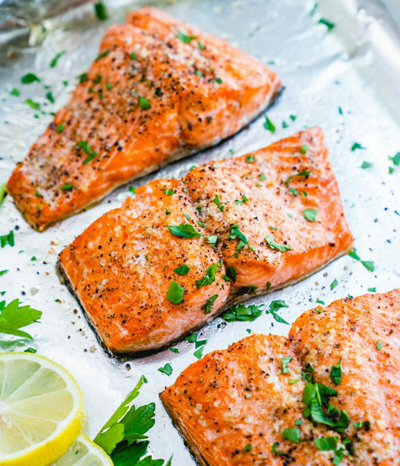 1. السلمون غني بأحماض أوميغا 3 الدهنية
