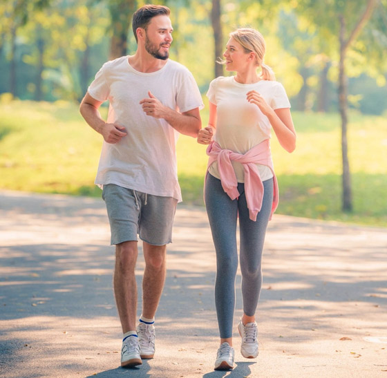 - تحسين صحة القلب: يعمل المشي على رفع معدل ضربات القلب، وهذا يخفض ضغط الدم؛ مما يحسّن صحة القلب بمرور الوقت، ويساعد الدورة الدموية بشكل عام. كما يقلل خطر الإصابة بالسكتة الدماغية.