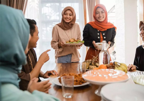 - حاولي تناول الوجبات الرئيسة خلال أيام العيد في أوقات قريبة من أوقات الإفطار والسحور، ومن ثم قرّبي مواعيد الوجبات تدريجياً إلى مواعيد الوجبات المعتادة، فذلك يساعدكِ تدريجياً على استعادة نظامكِ الغذائي الطبيعي.