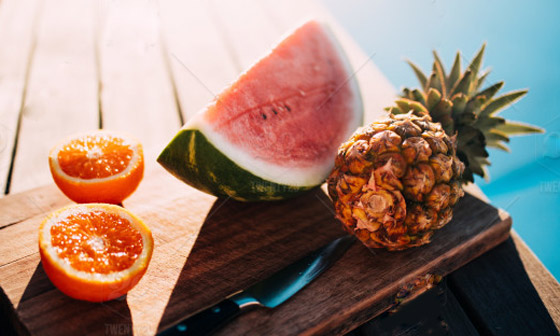 • البطّيخ: يزخر البطّيخ بالماء والألياف، بالإضافة إلى نسبة عالية من الفيتامينات "a" و"b" والأملاح والبوتاسيوم. تحتوي القطعة متوسّطة الحجم من البطّيخ على 62 سعرة حراريّة، ما يُعادل حصّة واحدة من الفواكه.