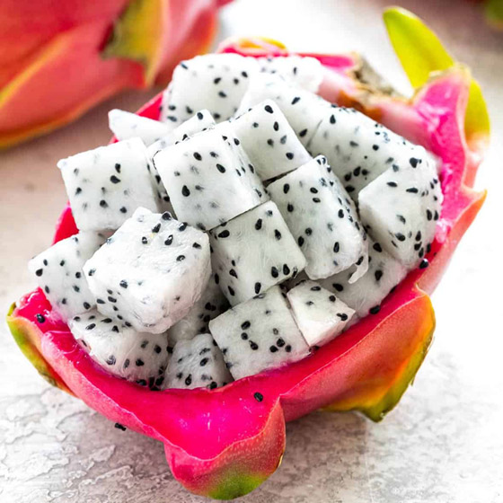تتميز فاكهة التنين بأنها منخفضة السعرات الحرارية وغنية بالفيتامينات والمعادن الأساسية فضلاً عن غناها بالألياف. في كوب واحد فقط من فاكهة التنين ستجد: