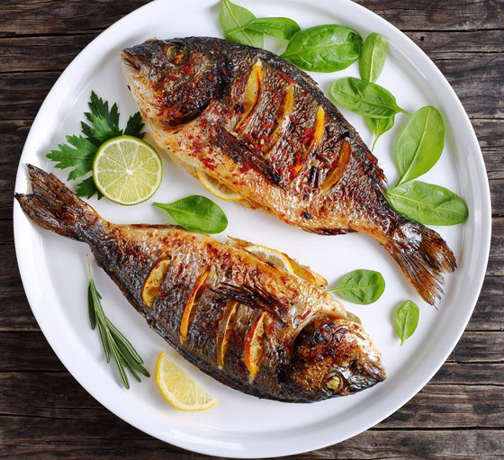 3- الأسماك: هي من الأطعمة الغنية بالأوميغا3 والأوميغا6 مما يجعلها تُحارب الالتهابات الجلديّة وتعتني بالبشرة التي تعاني من الشوائب. تحافظ الأسماك الدهنية (سردين، وماكاريل، ورنكة، وتونا، وسالمون) على صحة البشرة وتؤمن لها الوقاية التي تحتاجها كي تستعيد نضارتها وإشراقها.