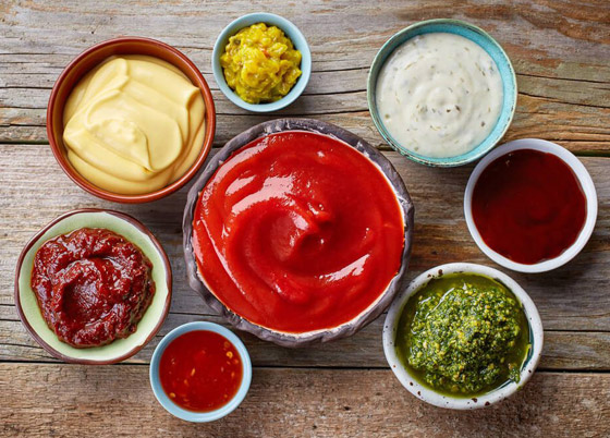 6. الصلصات والتوابل: من المعروف أن الكاتشب وصلصة الباربكيو وتتبيلات السلطة المصنوعة من التوت وغيرها من الإضافات الحلوة تحتوي على السكر. وتحتوي صلصة المارينارا على أكثر من 20 غرامًا لكل حصة، كما يمكن أن تحتوي صلصة سلطة الرانش والقيصر على كمية مماثلة. لذا يجب التحقق من الملصق على العبوة وأن يتم اختيار الأصناف بدون سكر مضاف.