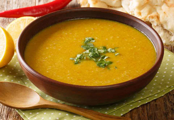 • شوربة عدس، كوب واحد يحوي 180 سعرة حرارية.
