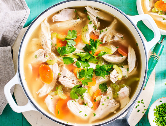 • شوربة الشعيرية بالدجاج، كوب واحد يحوي 150 سعرة حرارية.