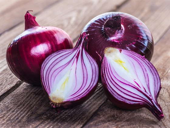 كما يشتهر البصل الأحمر، وفقاً لما ذكره مركز Denver Health Medical الطبي الأمريكي، أنه غني بمركبات الكبريت العضوي التي تساعد على منع تطور السرطانات عن طريق إزالة السموم من المواد المسرطنة، ووقف نمو الخلايا السرطانية ومنع تكون الأوعية الدموية.
